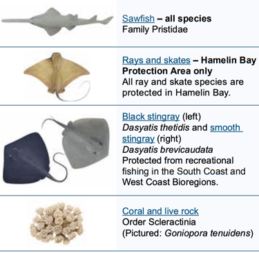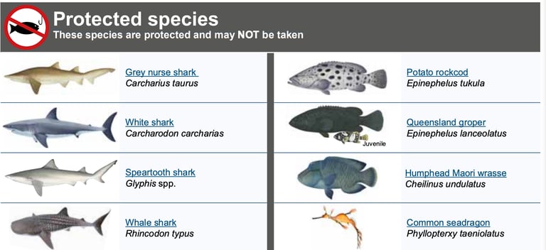 Be aware of protected species that you cannot target while spearfishing. These include certain sharks, rays, and other marine life. See list with photos below!